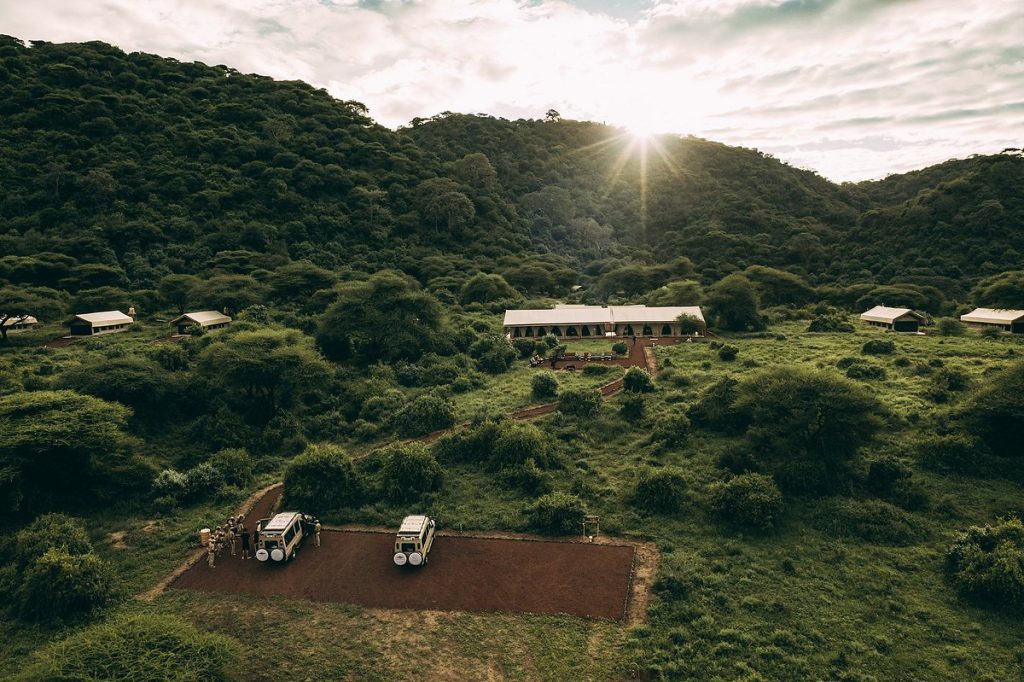 Tortilis Camp Manyara is nestled in the lush forest near Lake Manyara, providing easy access to the park’s diverse ecosystems, from acacia woodlands to the lake’s edge. The camp’s strategic location allows guests to experience the park’s famous wildlife, including elephants, hippos, flamingos, and the park’s resident tree-climbing lions.